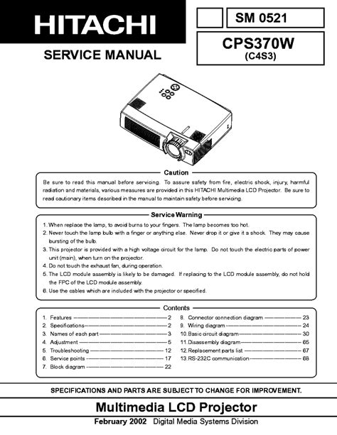 Related Book : Service Manual Hitachi Cps370w C4s3 Multimedia Lcd Projector