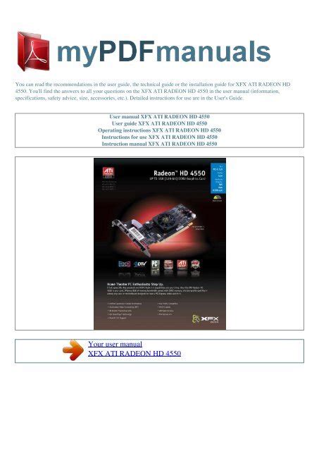 As a result of recent epidemic Covid-19 virus, lots of universities choose to just take on the net classes at your home. Then electronic textbooks are important for many learners. In this case, you'll be able to download the PDF textbook. Utilizing e-books is don't just environmentally friendly and also will save your cash. In this particular put up, We are going to advocate you this Site to down load a myriad of Xfx Ati Repair Service Manual User e-books at no cost.