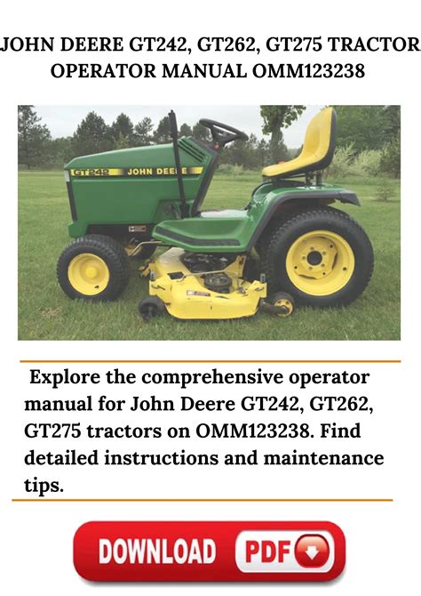 They are many of the John Deere Gt262 Operators ideas to locate a fascinating e-book to browse. When it comes to getting appealing textbooks, always understand that not Absolutely everyone has precisely the same preferences while you. One might say the e-book will not be attention-grabbing ample - Based on their Choices, but eventually might in fact transform intriguing for you. Although facts is useful, but eventually the final conclusion should really come from you.