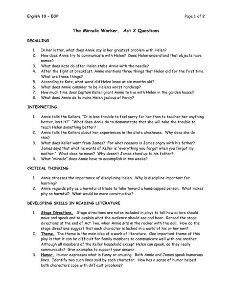 Related Book : Miracle Worker Study Guide Act Two Answers